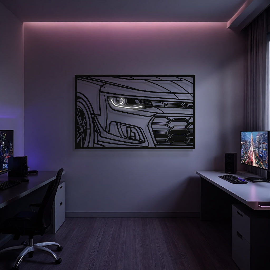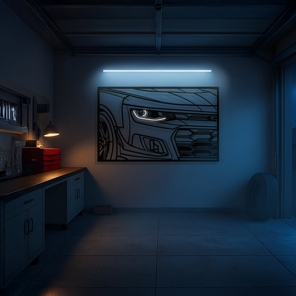 Her baktığınızda içinizdeki tutkuyu hissedin. 2024 Camaro ZLE 1LE apex neon ön görünüm metal çerçeveli duvar tablosu, ikonik çizgileri ve çarpıcı detaylarıyla duvarlarınıza özgün bir ruh ve benzersiz bir hikâye kazandıracak. Evinizi, garajınızı, salonunuzu, yatak odanızı ya da ofisinizi eşsiz bir alana dönüştürecek, şık ve modern görünümüyle hem otomobil meraklılarını hem de misafirlerinizi büyüleyecek.