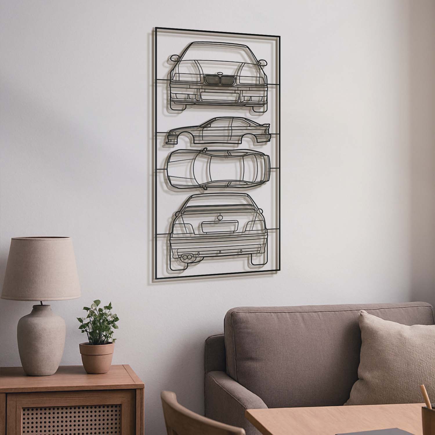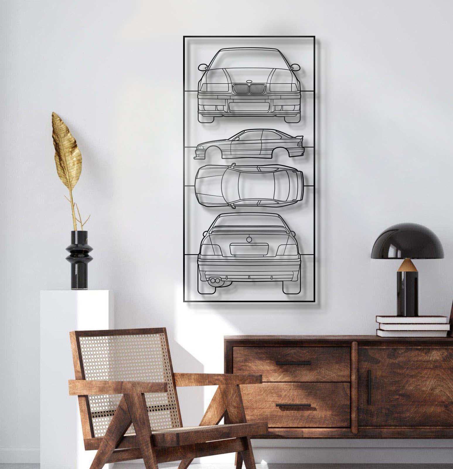 Her baktığınızda içinizdeki tutkuyu hissedin. E36 Quad Profil Metal Çerçeveli Silüet, ikonik çizgileri ve çarpıcı detaylarıyla duvarlarınıza özgün bir ruh ve benzersiz bir hikâye kazandıracak. Evinizi, garajınızı, salonunuzu, yatak odanızı ya da ofisinizi eşsiz bir alana dönüştürecek, şık ve modern görünümüyle hem otomobil meraklılarını hem de misafirlerinizi büyüleyecek.