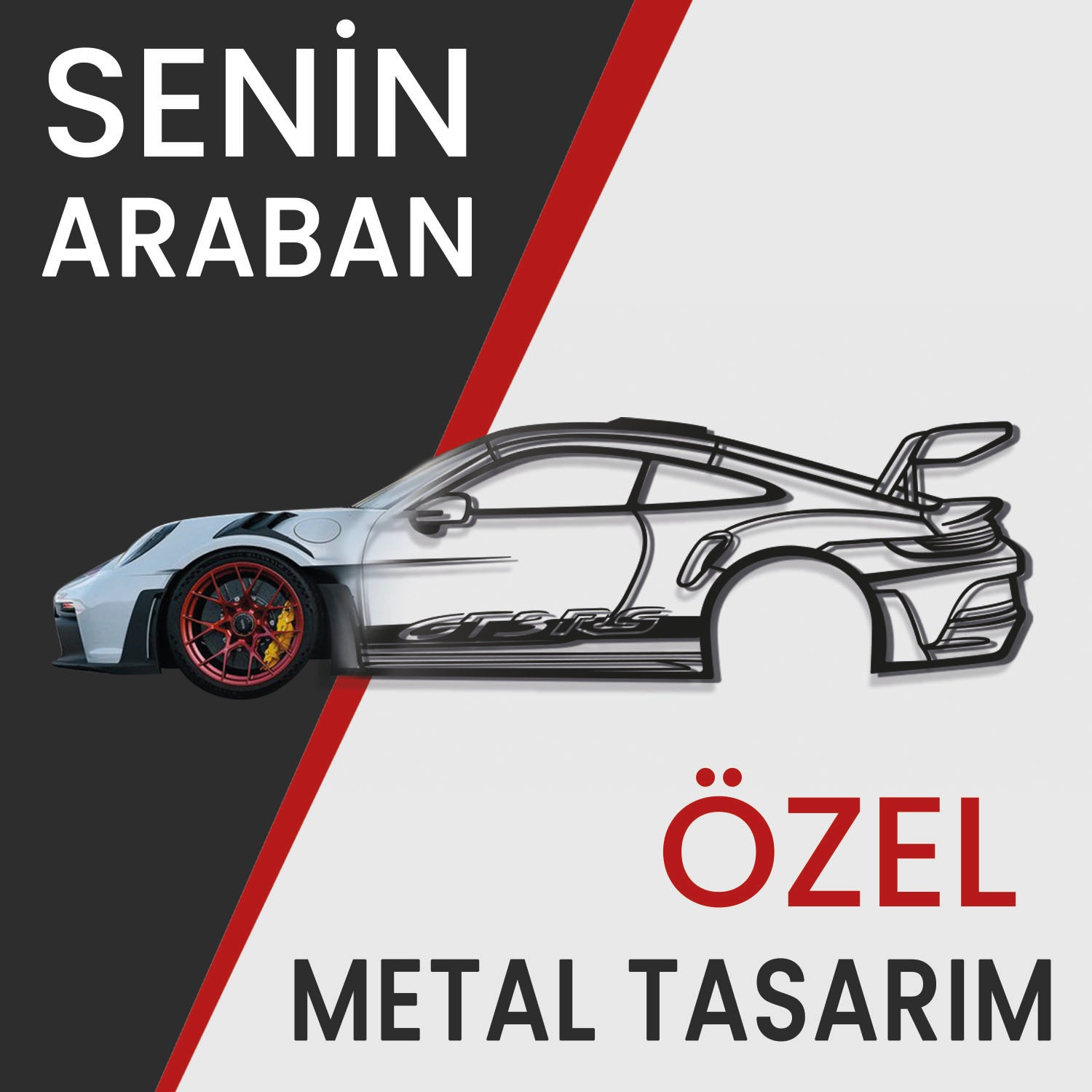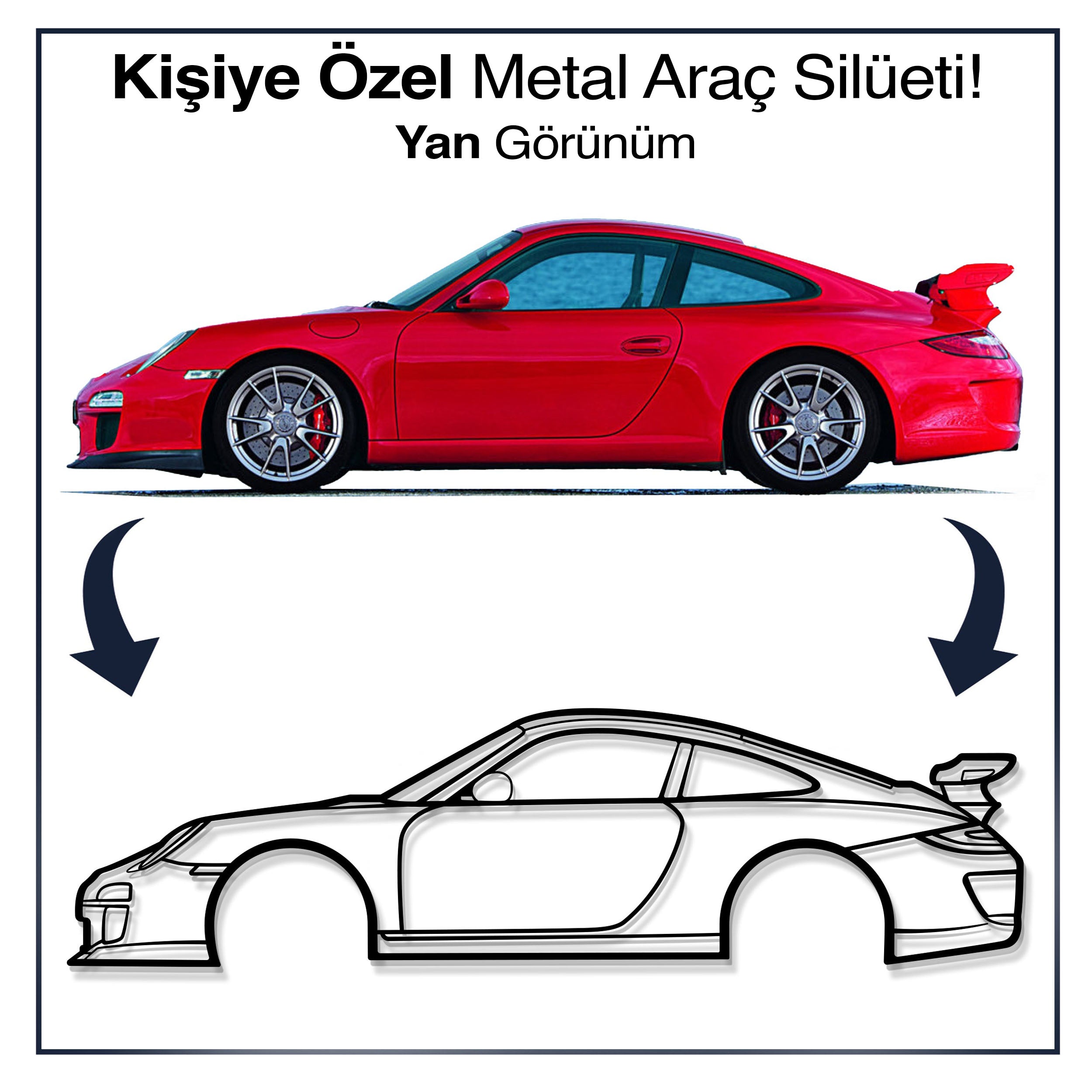 Her baktığınızda içinizdeki tutkuyu hissedin. Sizin için özel tasarlanıcak metal araç silüeti, ikonik çizgileri ve çarpıcı detaylarıyla duvarlarınıza özgün bir ruh ve benzersiz bir hikâye kazandıracak. Evinizi, garajınızı, salonunuzu, yatak odanızı ya da ofisinizi eşsiz bir alana dönüştürecek, şık ve modern görünümüyle hem otomobil meraklılarını hem de misafirlerinizi büyüleyecek.